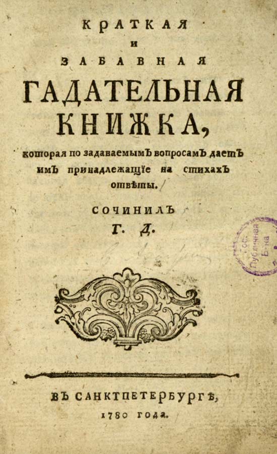 Вопросы в книге самые незамысловатые: «Выйду ли я замуж?», «Буду ли я богат?», «Выиграю ли или проиграю в карты или в суде?» другие в таком же роде. А вот гадательные ответы в стихах, замысловатые, местами до полной невразумительности.