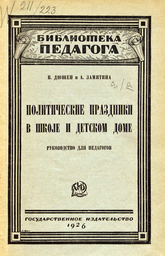 Перейдём к книгам. Сначала два сборника методических указаний, адресованных педагогам образовательных учреждений, поскольку организация и проведение массовых мероприятий и действ в советский период были плотно встроены в систему политвоспитания, которая, в свою очередь, была частью образовательного процесса.
